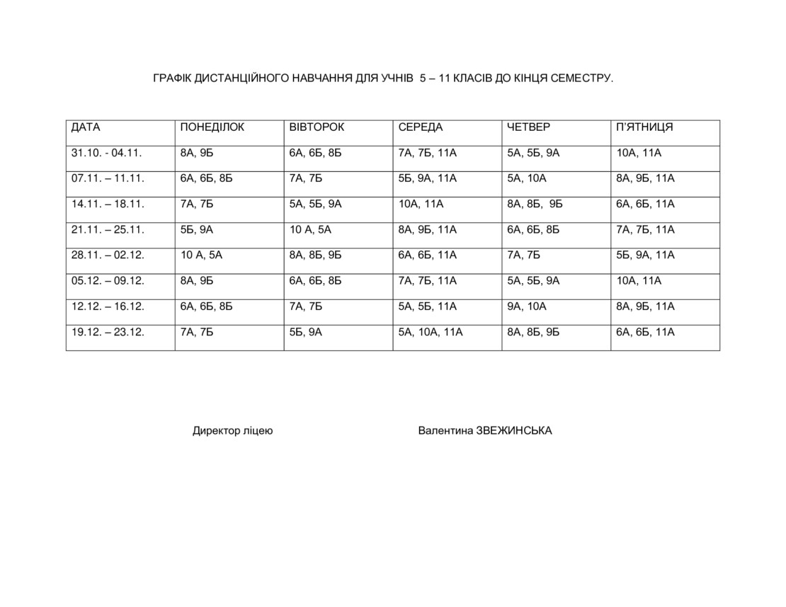 1. Графік дистанційного навчання для учнів у ІІ семестрі 2022-2023 н.р.